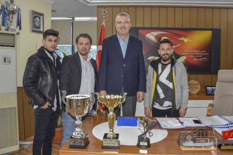 Takım kaptanlığını üstlenen Karacabeyli Kuaför Kenan Şahin, önceki gün Karacabey Belediye Başkanı Ali Özkan’ı ziyaret etti.