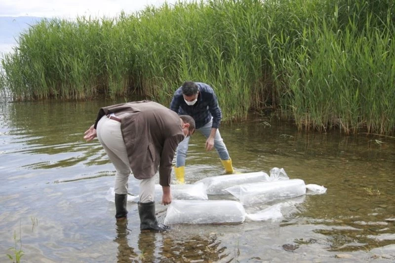 Tarım ve Hayvancılık Bakanlığınca yetiştirilen yavru sazanlar İznik Gölü’ne bırakıldı.