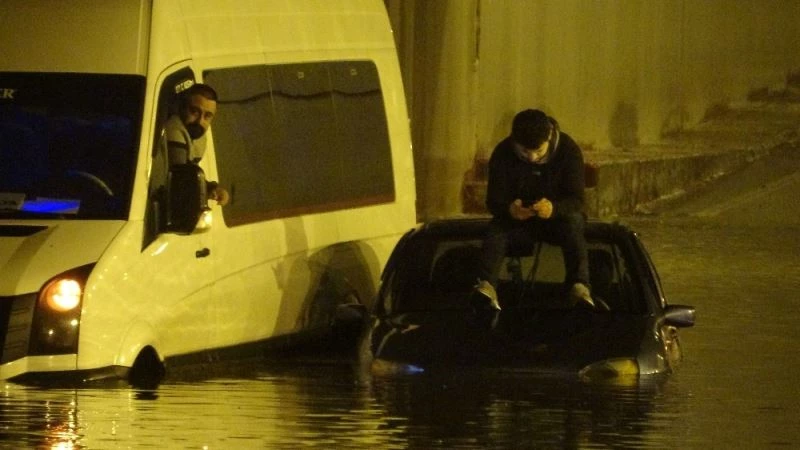 Antalya’da sağanak sonrası göle dönen alt geçitlerde araç sürücüleri mahsur kaldı. Sürücülerden biri, su dolan aracının üzerine çıkıp uzun süre kurtarılmayı bekledi. Sürücüler, tıkanan mazgalların açılmasının ardından kurtarıldı.