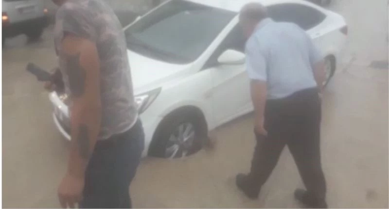 Öte yandan, Kapaklı Cumhuriyet Mahallesinde de birçok noktada taşmalar meydana geldi. Yağış nedeniyle bir otomobil, çöken yolda mahsur kaldı. Çevredekilerin tüm çabalarına rağmen kurtarılamayan araç, çekici yardımı ile bulunduğu yerden çıkarıldı.