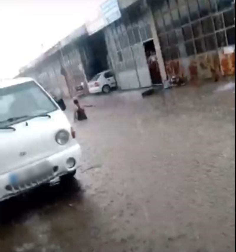 Tekirdağ’ın Malkara ilçesinde etkili olan şiddetli sağanak yağışta göle dönen yolda bir vatandaşın yüzmeye çalışması izleyenleri gülümsetti.