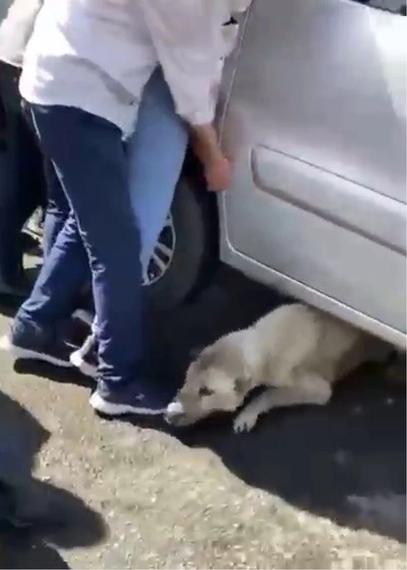 Ardahan’ın Göle ilçesinde otomobilin altında sıkışan köpek vatandaşların yardımıyla kurtarıldı.