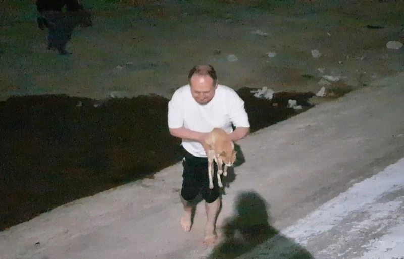 Suya girerek kediyi kurtaran Tevfik Demirhan, “Akşam yürüyüş yapıyorduk, bir kedi sesi duyduk, dikkatli baktığımda suyun içerisinde bir kedi olduğunu gözlemledim. Suya girerek kediyi aldım. Belediyemizin veteriner hekimlerini bekliyoruz. Kedinin gözünde enfeksiyon oluşmuş, kedinin hırıltısı çok fazla büyük ihtimalle üşütmüş" dedi.