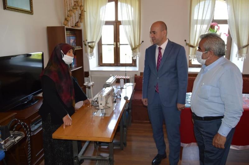 Karaosmanoğlu, Kovid-19 sürecinde maske dikimi gerçekleştiren kadınlara çalışmalarından dolayı teşekkür etti.