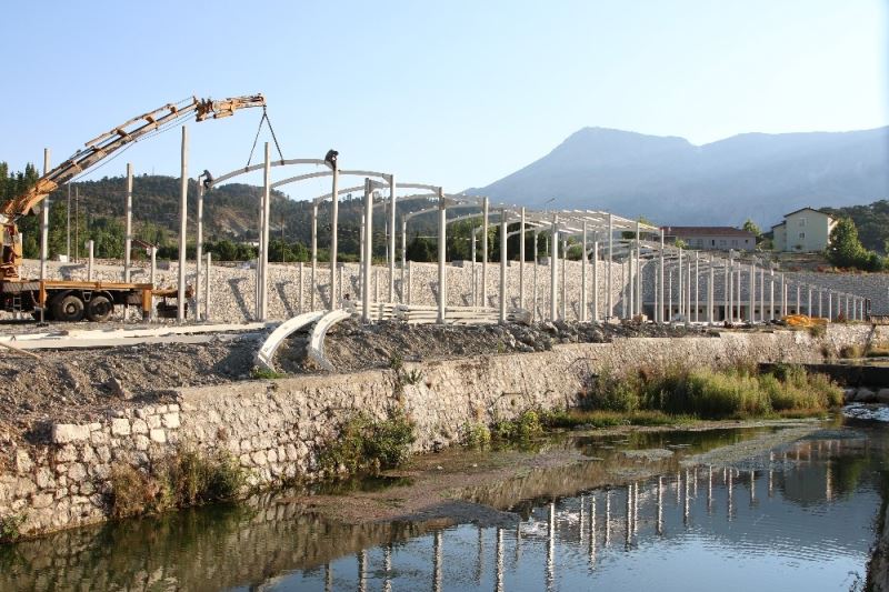 Kaş ilçesinde yapımı planlanan Gömbe Panayır Alanı ve Çevre Düzenlemesi Projesine ilişkin inşa çalışmasının devam ettiği bildirildi.