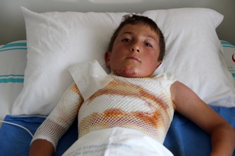 Çocuğunun hayatını kurtaran anne Sönmez, durumu 112 Acil Sağlık ekibine bildirdi. Olay yerine gelen ekipler küçük Fatih’i Ardahan Devlet Hastanesi’ne götürdü. Burada yapılan ilk müdahalenin ardından Fatih Sönmez, Erzurum Şehir Hastanesi’ne sevk edilerek tedavi altına alındı. Küçük çocuğun çene ve göğsünde ikinci dereceden yanıklar oluştuğu belirtildi.