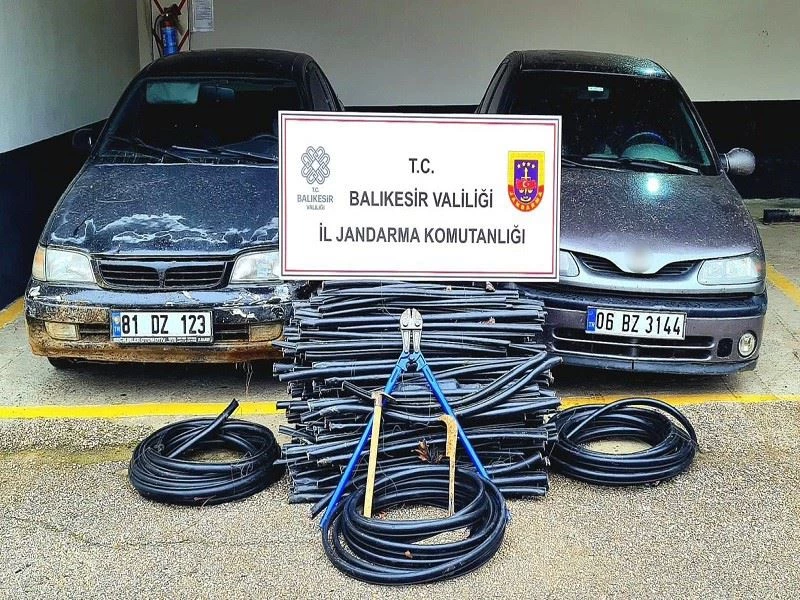 Gönen İlçe Jandarma Komutanlığı ve Jandarma Suç Araştırma Timlerinin (JASAT) müşterek gerçekleştirdiği operasyon neticesinde 2 şüpheli olayda kullanılan araç, makas ve kesilen kablolar ile birlikte suçüstü yakalandı. Olayın şüphelileri V.T. ve Y.C. hakkında adli makamlarca işlem yapılmış olup, ele geçen kablolar yetkililere teslim edildi.