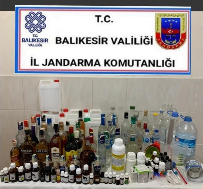 Balıkesir İl Jandarma Komutanlığınca, kaçak üretimi yapılan alkol ile meydana gelen ölümleri engellemek maksadıyla sahte ve kaçak içki imal ve ticaretine yönelik çalışmalar neticesinde, Gönen İlçesinde sahte ve kaçak içki imal ve ticareti yaptığı tespit edilen 1 şüphelinin ev ve eklentilerinde yapılan aramada; 97 litre etil alkol, 54 litre rakı, 18 litre viski ve 4 litre likör olmak üzere toplam 173 litre kaçak içki ele geçirildi. Ele geçen kaçak içki malzemelerine el konularak şüpheli hakkında adli tahkikata başlanıldı.