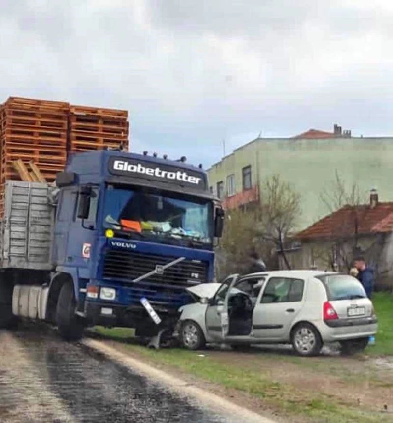 Gönen’de palet yüklü tır ile otomobil kafa kafaya çarpıştı
