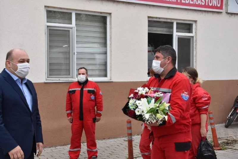 GÖNDAK’ı ilçeye dönüşlerinde karşılayan Gönen Belediye Başkanı İbrahim Palaz; " Öncelikle hoşgeldiniz, Gönen’in övünç kaynağıydınız. Sizlerin yaptığınız görevin ne kadar önemli olduğunu bişliyorduk İzmir depremi ile bu bir kez daha ön plana çıktı. Ben Gönen halkı adına hem hoş geldiniz hem de hepinize çok teşekkür ediyorum.Yedi günlük bir karantina süreciniz var bu sürecin ardından çay kahve içmeye ve belediye olarak Göndak ile birlikte neler yapabiliriz ne gibi eğitimler oluşturabiliriz konuşuruz" dedi.