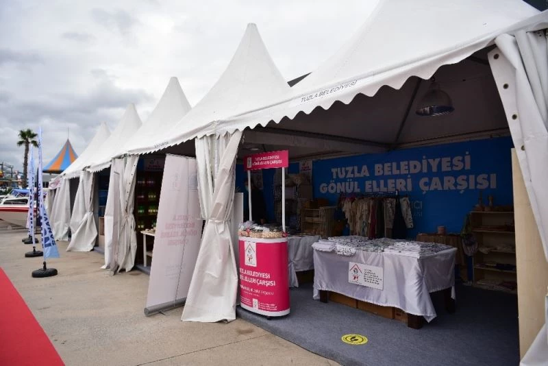 Bu yıl Tuzla Marina’da 5’incisi düzenlenen Uluslararası Denizcilik Fuarı‘nda ihtiyaç sahibi kadınların ürettiği ürünler satışa sunuldu. Tuzla Belediyesi Gönül Elleri Çarşısı El Sanatları ve Ar-Ge Komisyonları tarafından kurulan stantta, el emeği ile üretip hazırlanan nevresim takımları, yastık kılıfları, yastıklar, masa örtüleri, el nakış havlular, ev dekorasyon ürünleri, geri dönüşüm malzemesinden yapılan ev aksesuarları, bambu sepetler, maskeler, mutfak önlükleri, şile bezinden dokunan kıyafetler satışa sunuldu. Tuzla Belediye Başkanı Dr. Şadi Yazıcı’nın eşi ve Gönül Elleri Çarşısı’nın Kurucu Gönüllülerinden Dr. Fatma Yazıcı ile birlikte Gönül Elleri Çarşısı Yönetim Kurulu üyeleri standı ziyaret etti. Stantta satılan el emeği ürünlerden elde edilen gelirler ise, ev ekonomisine katkıda bulunacak şekilde yine ihtiyaç sahibi ailelere ulaştırılacak.