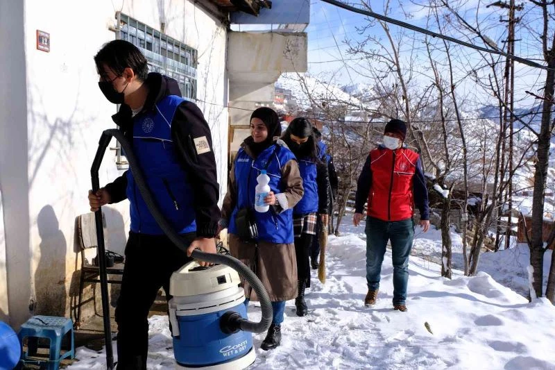 Gümüşhane Gençlik Merkezi’nin gönüllü gençleri zor kış şartlarında ev işlerini yapmakta zorlanan yaşlı vatandaşların evlerine giderek hem temizlik yapıyor hem de hayır dualarını alıyor.