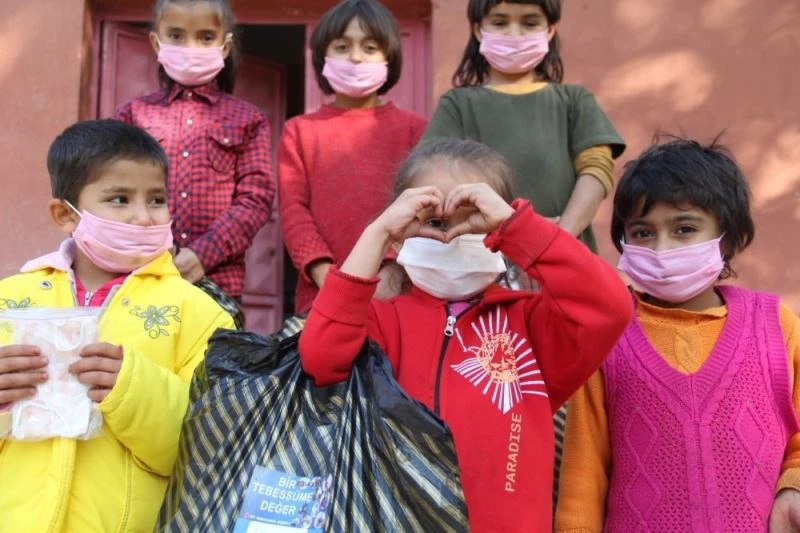 Kahramanmaraş’ta yardımsever bir grup, köy okullarındaki çocuklara 2020 mont ve 2020 bot dağıttı.