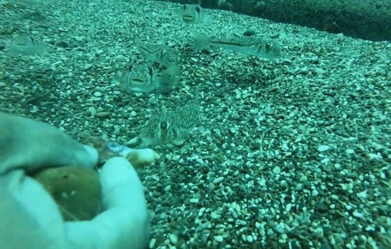 Son dönemde olta ve ağ balıkçılarının kabusu haline gelen ve bir süre önce ölüsünü yedikleri kedilerin telef olmasına neden olan balon balıkları su altındaki yaşamlarında görüntüledi. Saldırgan yapılarıyla bilinen balon balıklarını Akdeniz Üniversitesi (AÜ) Su Ürünleri Fakültesi Öğretim Üyesi Prof. Dr. Mehmet Gökoğlu, Konyaaltı Sahili açıklarında doğal yaşamlarında izledi. Balon balığı sürüsünün etrafında dolaştığını gören Gökoğlu, kırdığı bir midye parçası ile onları besledi. İstiridye ile de besleme yapan Gökoğlu, o anları görüntülemeyi de ihmal etmedi. Korkarak yeme yaklaşan balon balıklarının, Gökoğlu’nun elinden tüm istiridye ve midye parçalarını yedikleri görüldü. Gökoğlu, kıyıya yakın noktada denk geldiği balon balığının en küçük türünü bir süre besledikten sonra bölgeden ayrıldı.