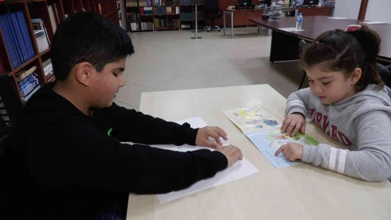 Görme engelli arkadaşı Braille Alfabesi ile hazırlanan kitabı okurken, kitaptaki resimleri betimleyen 8 yaşındaki Miray Buğlem Avcı, “Burada dil terapistine gidiyordum, dört tane harfi söyleyemiyordum. İkinci sınıf öğrencisiyim. Görme engelli bir arkadaşa kitap okuyorum. Ben dinliyorum, yanlışlarını düzeltiyorum. Onun kitabında resimler olmadığı için ben o resimleri ona betimliyorum” şeklinde konuştu.