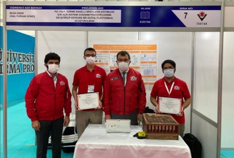 Görme engelli bireylerin problemlerini ele alan ve özellikle eğitim alanında görme engelli bireylerin yaşadıkları sorunlara teknolojik çözümler sunan “Görme Engelli Bireylerin Eğitimleri İçin Açık Kaynak Donanım Prototiplerinin Geliştirilip Entegre Bir Dijital Platformun Oluşturulması” isimli proje ile birincilik elde eden Furkan Güneş, ödülünü düzenlenen törenle TÜBİTAK Başkanı Prof. Dr. Hasan Mandal’dan aldı.