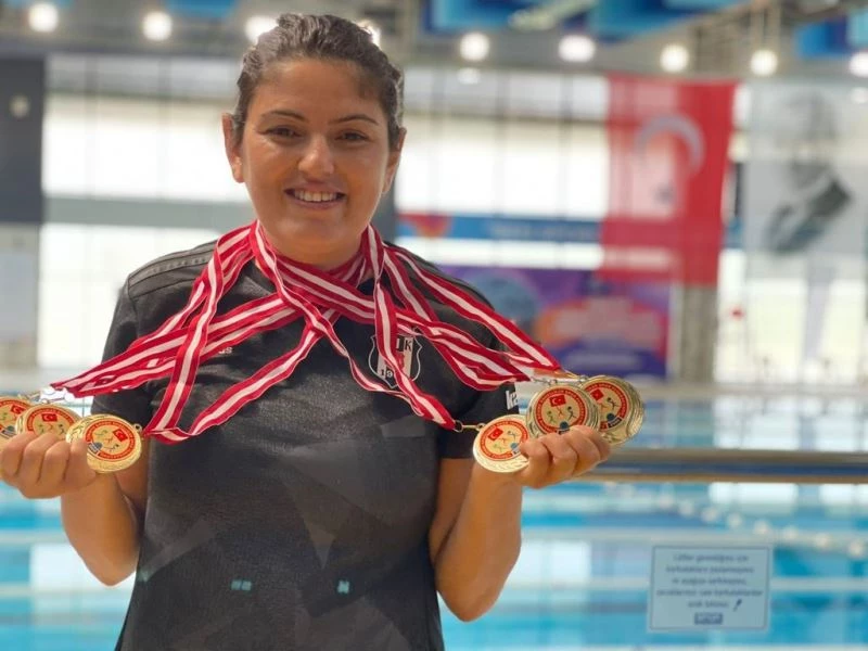 Görme engelli genç kız yüzme yarışmasında 6 altın madalya kazandı