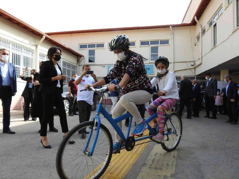 Gaziantep’te görme engelli öğrenciler eş pedallı bisikletle tur attı. İlk kez bisiklete binen öğrencilere ayakkabı, kıyafet, çanta ve kırtasiye de hediye edildi.