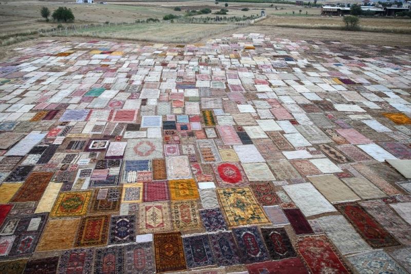 ANTALYA (AA) - Antalya'nin Dösemealti ilçesinde tarlalara serilen el dokumasi hali ve kilimler görsel sölen sunuyor.