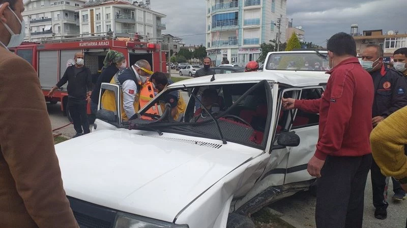 Kaza Manavgat ilçesi Sarılar Muhittin Ersoy Bulvarında meydana geldi. Edinilen bilgiye göre, yolun sağından ters yönde kavşağa girmeye çalışan Mahmut S.’nin kullandığı 07 ALR 542 plakalı Tofaş Kartal marka otomobilin Muhittin Ersoy Bulvarında seyir halindeki Alican S.’nin kullandığı 07 AIY 756 plakalı ticari araç ile kavşakta çarpıştı. Mahmut S.’nin kullandığı otomobil çarpışmanın şiddetiyle yaya geçidinden refüjü geçtikten sonra karşı şeridi de geçip kaldırımda durabildi.