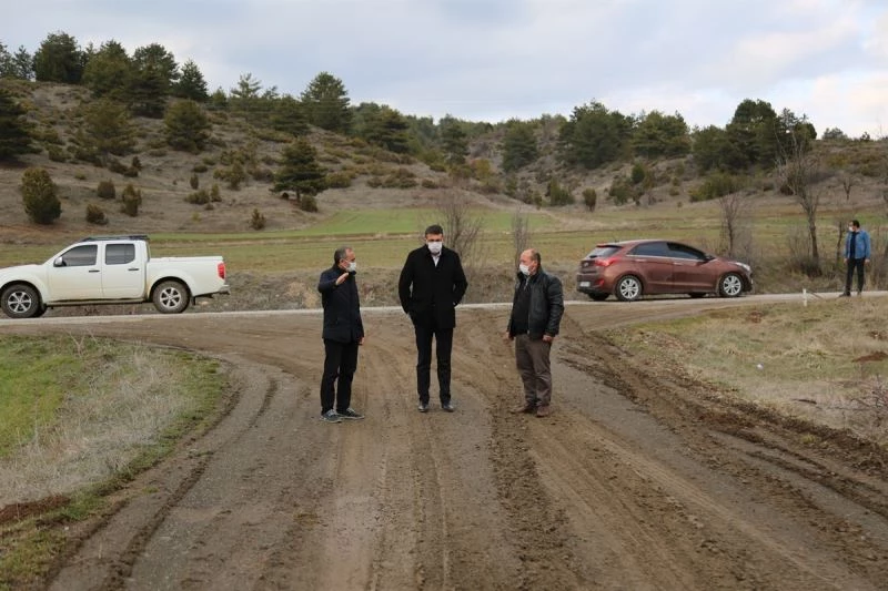 Tavşanlı Şenlik- Eğriöz Grup Yolu’na bağlanan toprak yolda incelemelerde bulunan Vali Ali Çelik, yola malzeme dökülerek çamur sorununun giderileceğini söyledi.