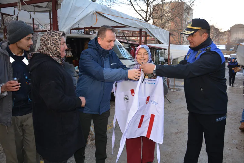 Belediye Başkanı Fatih Önge'nin katılımıyla gerçekleştirilen çalışma kapsamında, ilçede tezgah açan 150 pazar esnafına resmi yaka kimlik kartları ve belediye logolu önlükler teslim edildi.