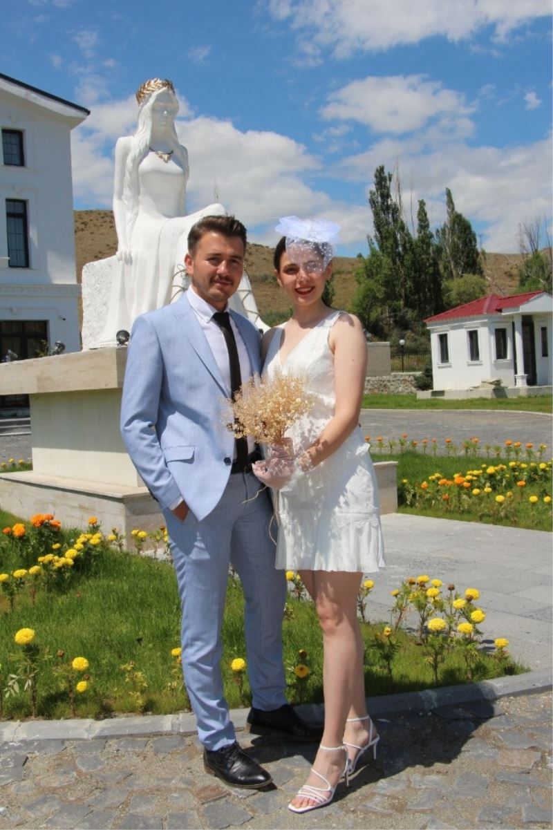 Narman’a yapılan Turistik Butik Otel önünce yapılan Gülperi heykeli genç çiftlerin ilgi odağı oluyor.