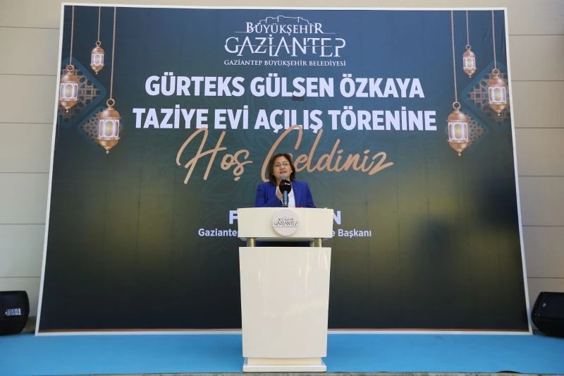 Gaziantep Büyükşehir Belediyesi’yle hayırsever Özkaya ailesinin iş birliğiyle Gülşen Özkaya adına hizmete alınacak taziye evinin yapımı tamamlandı. Taziye evi açılış törenine, Büyükşehir Belediye Başkanı Fatma Şahin, Gaziantep Valisi Davut Gül, Gaziantep MHP Milletvekili Sermet Atay, Şahinbey Belediye Başkanı Mehmet Tahmazoğlu ve hayırsever Özkaya aile fertleri katıldı. Açılış töreninin ardından kurdele kesimine geçen protokol üyeleri taziye evini gezdi. Gaziantep Büyükşehir Belediye Başkanı Fatma Şahin ve ekibi, göreve geldiği 2014 yılından bu yana şehrin muhtelif yerlerinde toplamda 50 taziye evi inşa etti. Bunların bir kısmını Büyükşehir Belediyesi olarak bir kısmını da hayırsever iş insanlarının iş birliğinde gerçekleştirdi.