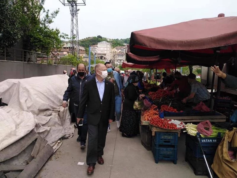 Gülüç Belediye Başkanı Gökhan Demirtaş ile İlçe Gençlik ve Spor Müdürü Serkan Keleş’in de semt pazarındaki incelemelerde eşlik ettiği Kaymakam Çorumluoğlu, denetim ve uyarılarda bulundu. İlk günden itibaren en üst düzeyde önlem aldıklarını vurgulayan Başkan Demirtaş, yaptığı açıklamada şunları söyledi: