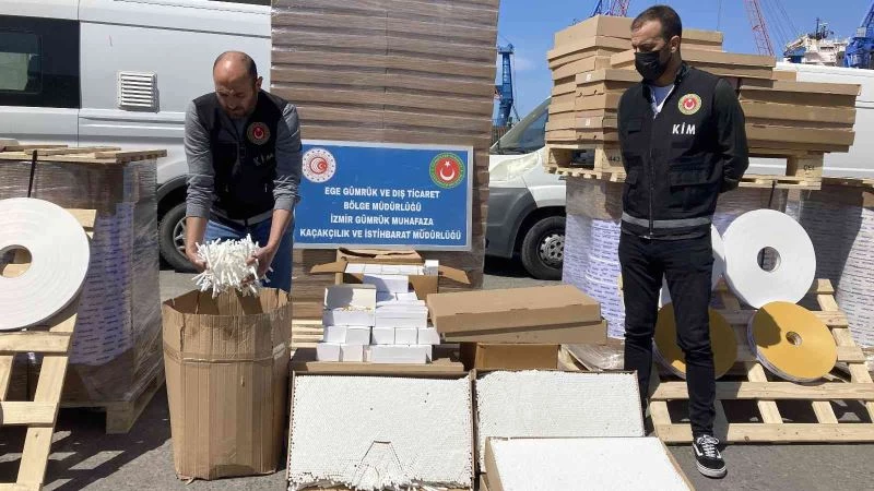 Ticaret Bakanlığı İzmir Gümrük Muhafaza Kaçakçılık ve İstihbarat Müdürlüğü ekipleri tarafından Manisa’nın Turgutlu ilçesinde bulunan bir depoya gerçekleştirilen operasyonda, yasadışı sigara üretiminin en önemli ham maddelerinden olan binlerce makaron, rulo halinde sigara uç kağıdı ve sigara filtresi ele geçirildi.