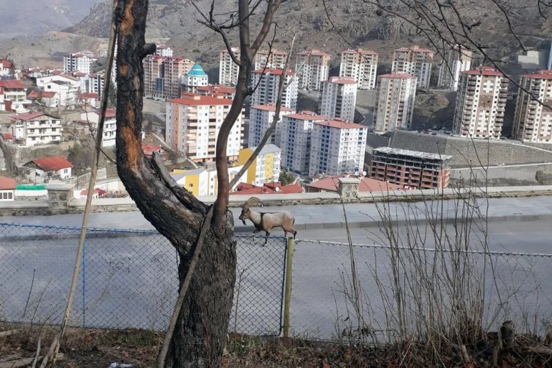 Gümüşhane dağlarının süsü olarak kabul edilen ve kayaların usta tırmanıcısı olan yaban keçileri Gümüşhane kent merkezine kadar indi.