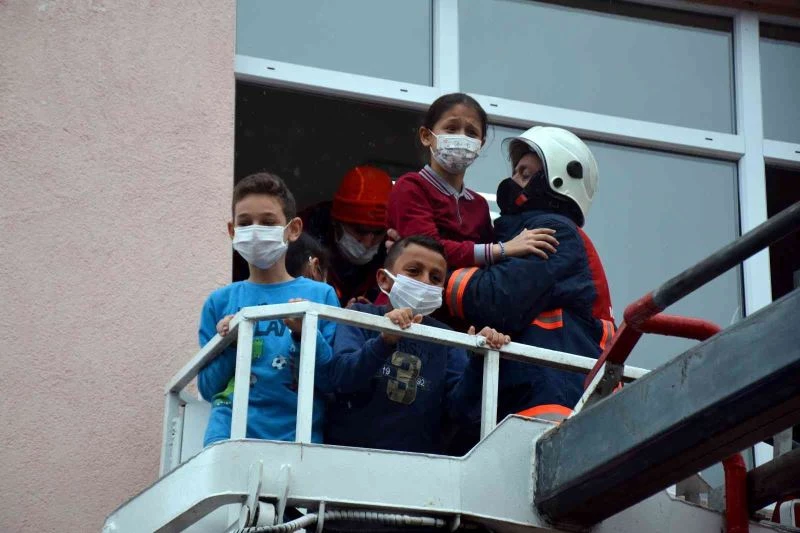 Senaryo gereği merkeze bağlı Tekke köyünde ise 84 öğretmen ve öğrencinin bulunduğu Tekke ilkokulunda kaya düşmesi nedeniyle okul binasında mahsur kalan öğretmen ve öğrenciler tahliye, arama ve kurtarma, sağlık ve psiko-sosyal destek çalışma gruplarınca kurtarıldı.
