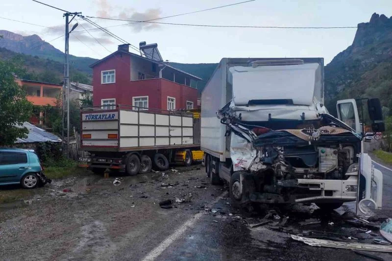 Edinilen bilgiye göre, İkisu-Şiran karayolu üzerindeki Dibekli köyü Topçulu mevkiinde gerçekleşen kazada Şiran istikametine ilerleyen Şenol K. yönetimindeki 61 K 4040 plakalı tır yağmur nedeniyle kayganlaşan yolda kontrolden çıktı. Karşı yönden gelen Şükrü G. yönetimindeki 55 AT 258 plakalı kamyon da şerit değiştiren tıra çarpmamak için frene basınca kayarak kontrolden çıkıp tırın dorsesine çarptı. Çarpmanın etkisiyle 61 plakalı tır yol kenarında park halindeki başka bir araca çarptı.