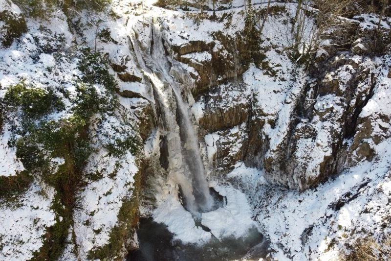 Gezmek için bölgeye giden Serkan Özdemir tarafından kayıt altına alınan karlı ve buzlu Çağlayandibi Şelalesi görüntüleri sosyal medyada da çok sayıda paylaşım ve beğeni aldı.