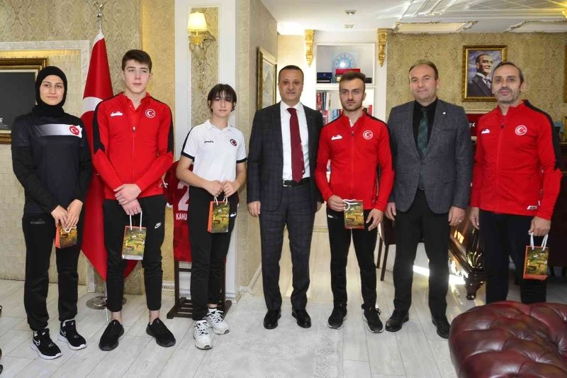 Vali Taşbilek, geçtiğimiz günlerde Antalya’da 54 ülkeden bin 470 sporcunun katıldığı şampiyonada 3’ü dünya birinciliği olmak üzere toplam 9 madalya elde eden Gümüşhaneli bilek güreşi sporcularını makamında kabul etti.