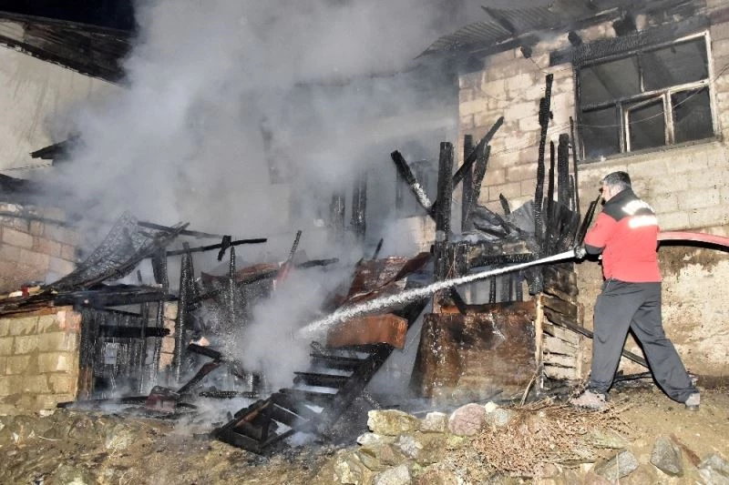 Gümüşhane’de gece saatlerinde çıkan yangında bir ev kullanılamaz hale geldi. İçinden 4 mutfak tüpünün çıktığı evin önünde yanmak üzere olan köpeği genç bir vatandaş kurtardı.