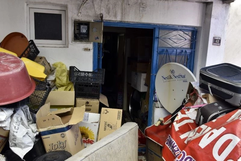 Hasanbey Mahallesi Karanfil sokakta yaşayan Şükran B.’nin evinde de çalışma yapan ekipler kapısının dahi güçlükle açıldığı evde ilk olarak dezenfeksiyon çalışması yaptı. Alınan güvenlik tedbirleri kapsamında belediye ekipleri buradan da bir kamyon dolusu malzeme çıkardı.