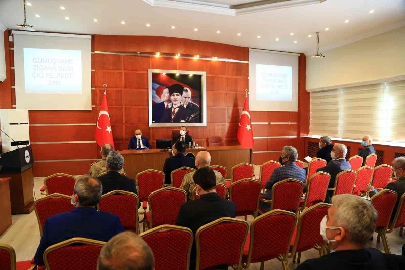 Valilik Toplantı Salonunda düzenlenen ve Vali Yardımcısı Gürkan Karaman, İl Emniyet Müdürü Celal Taşci, İl Jandarma Komutanı Albay İsmail Gökcek, İl Özel İdaresi Genel Sekreteri Ekrem Akdoğan, İl Milli Eğitim Müdürü Miraç Sünnetçi, İl Sağlık Müdürü Dr. Necip Yemenici ve ilgili diğer kurum müdürlerinin katıldığı toplantıda ilk olarak 2009 yılında Torul ilçesi sınırlarındaki Zigana dağında gerçekleşen çığ felaketinde hayatını kaybeden 10 dağcı için hazırlanan video izletildi.