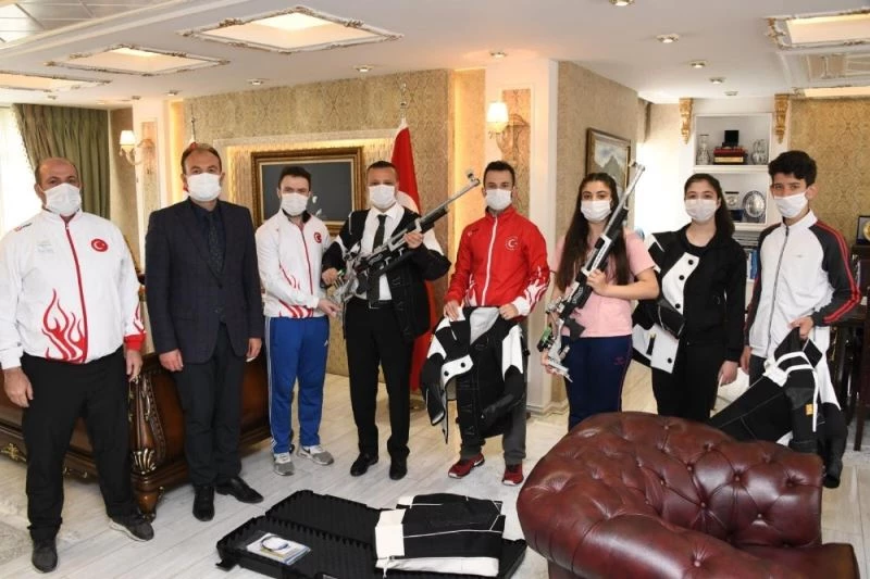 Şampiyon sporculara malzemeleri dağıtan Vali Taşbilek, “Bu alanda ulusal, uluslararası dereceleri olan rekortmen milli sporcularımız var. Bizler de her zaman sporcularımızın yanındayız. İnşallah ülkemizde tek ve ilk defa kullanılacak olan havalı müsabaka tüfeklerimiz ve diğer ekipmanlarımızla birlikte sporcularımız ulusal ve uluslararası başarılarına devam edecekler. Artık sporcularımızdan dünya şampiyonluğu bekliyorum” dedi.