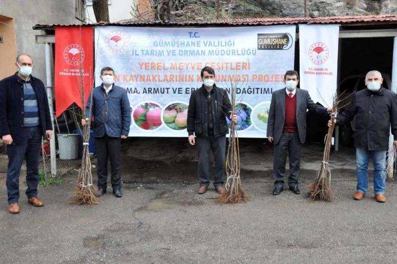 Gümüşhane’de yerel meyve çeşitlerinin korunması için çiftçilere 4 bin adet elma, armut ve erik fidanı dağıtıldı.