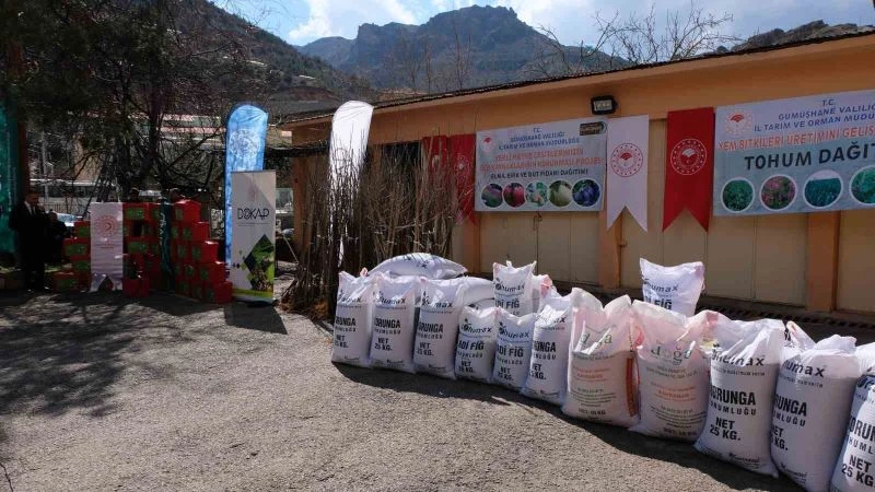 Proje kapsamında üreticilere, Gümüşhane İl Tarım ve Orman Müdürlüğü tarafından hazırlanan ve İl Özel İdaresi tarafından yüzde 50 destekli olarak finanse edilen ‘Yerli Meyve Çeşitlerimizin Gen Kaynaklarının Korunması Projesi’ kapsamında toplam 120 bin TL bütçeli 3 bin adet meyve fidanı dağıtıldı.