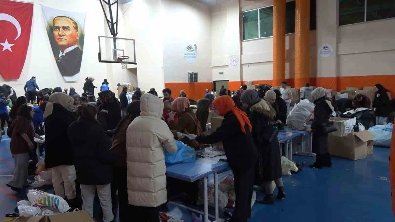 Gençlik Merkezinin başlattığı kampanyaya katkı sağlayan vatandaşlar spor salonunda kısa sürede kolilerce yardım malzemesinin birikmesine neden oldu.