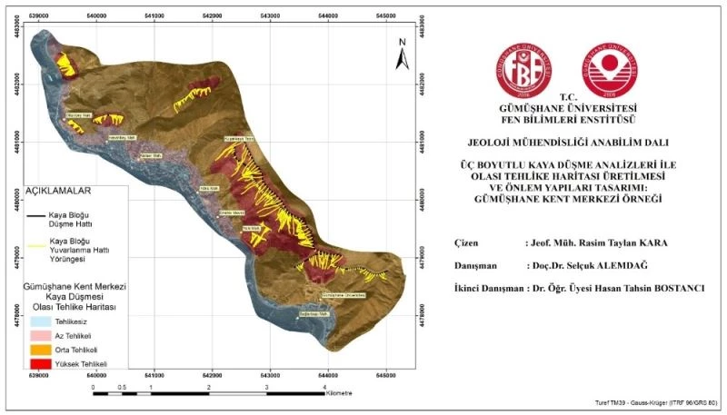 Gümüşhane’de üç yıldır devam eden bir çalışmayla derin bir vadide kurulan kent merkezinin kaya düşme analizleri yapılarak tehlike haritası çıkarıldı. Çalışmada olası vakalar da simüle edilerek elde edilen verilerle tüm kurumların kullanabileceği sayısal altyapı oluşturuldu.