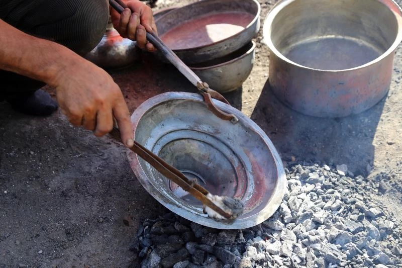 İşlerin eskisi gibi olmadığını, haftada en fazla 2-3 kap kalayladığını ifade eden Okan, sağlık için bakır kaptan vazgeçilmemesini istedi.