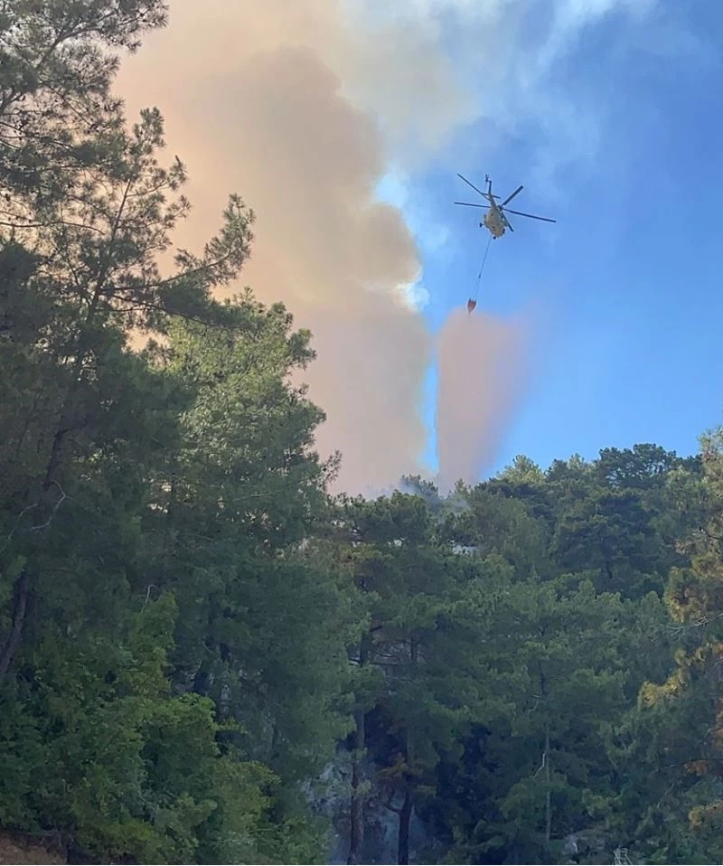 Ekipler, yangına, 6 uçak, 2 helikopter, 5 arazöz, 2 ilk müdahale aracı ve 3 su tankıyla müdahale etti. Evlere sıçramadan yangını kontrol altına alan ekipler, soğutma çalışmalarını sürdürüyor.