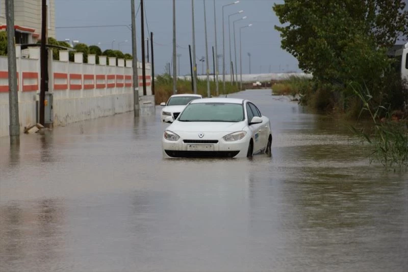 Serik ilçesinde akşam saatlerinde başlayıp yer yer etkisini artıran sağanak nedeniyle tarım alanları ve seralar su altında kaldı.