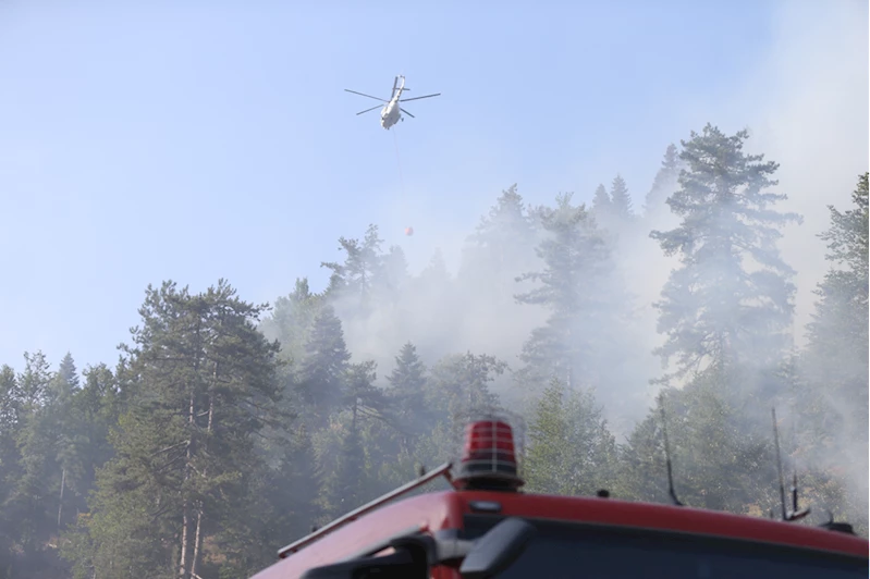 İhbar üzerine bölgeye sevk edilen ekipler yangına 2 uçak, 8 helikopter, 24 arazöz, 5 su tankı, 12 iş makinesi ve 300 personelle müdahale etti.