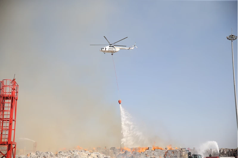 Öte yandan, tesisteki bazı kağıt ve plastikler, yangından etkilenmemeleri için iş makineleriyle dışarı çıkarıldı. Ayrıca su doldurulan beton mikserleriyle de yangına müdahaleye destek verildi.