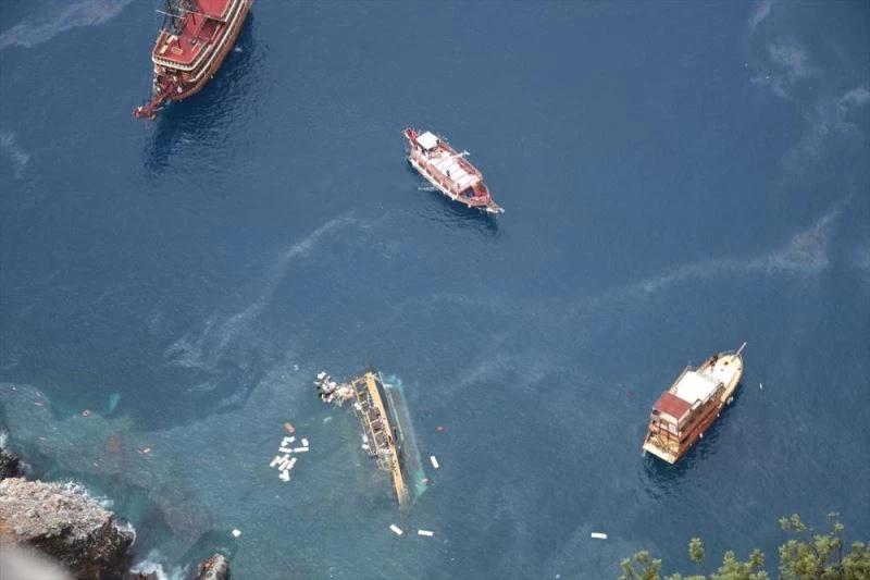Alanya Kalesi Fosforlu Mağarası mevkisinde kıyıdan yaklaşık 50-100 metre açıkta henüz bilinmeyen bir nedenle tur teknesi battı.