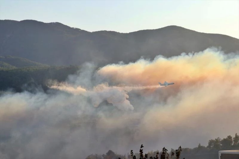 Rüzgarın şiddetlenmesi nedeniyle yangına havadan müdahaleye ara verilirken, itfaiye ve orman işletme ekiplerinin karadan müdahalesi havanın kararmasına rağmen devam ediyor.